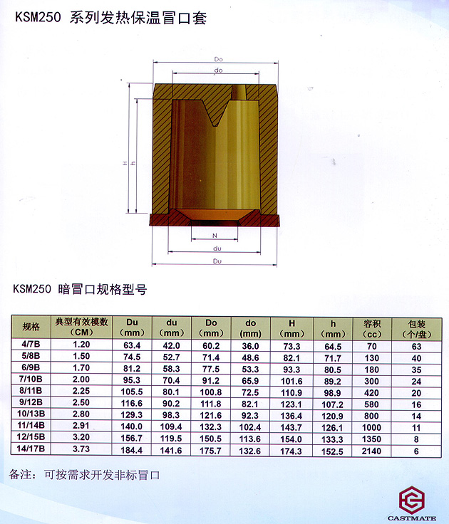 產品類別: 發熱保溫冒口套—KSM250系列 >> KSM250 暗冒口