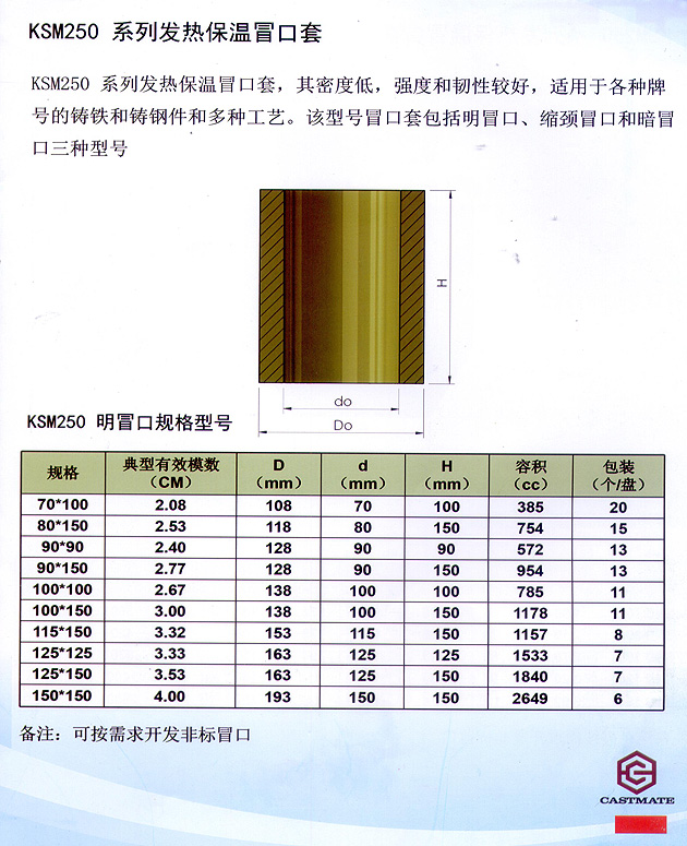 產品類別: 發熱保溫冒口套—KSM250系列 >> KSM250 明冒口