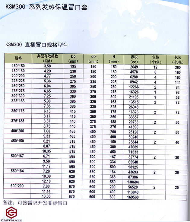 產品類別: 發熱保溫冒口套—KSM300系列 >> KSM300 發熱保溫冒口套